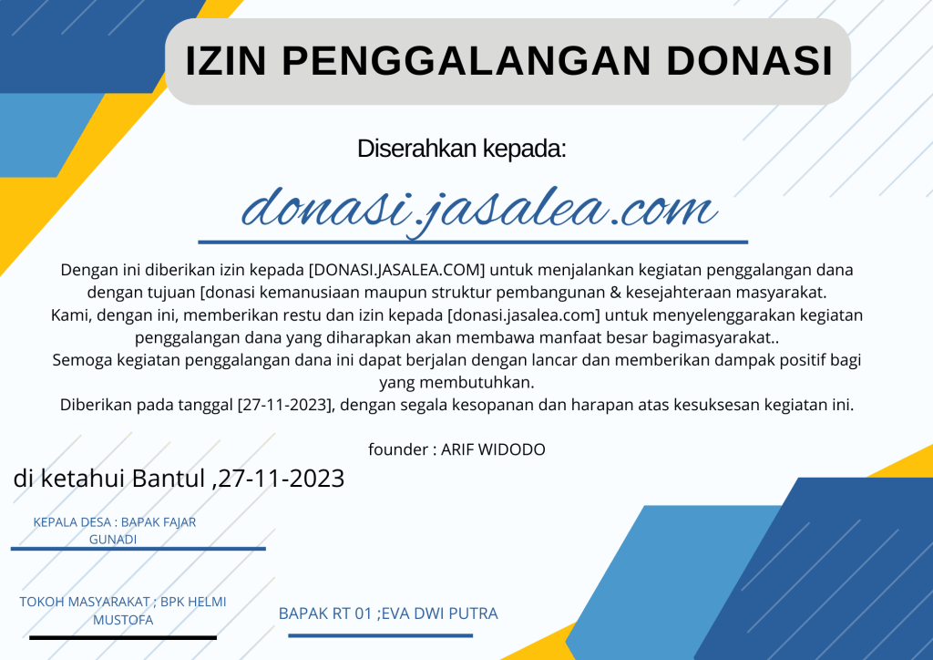 Donasi jasalea, sebagai platfoam digital untuk mengembangkan DONASI secara berkelanjutan.,